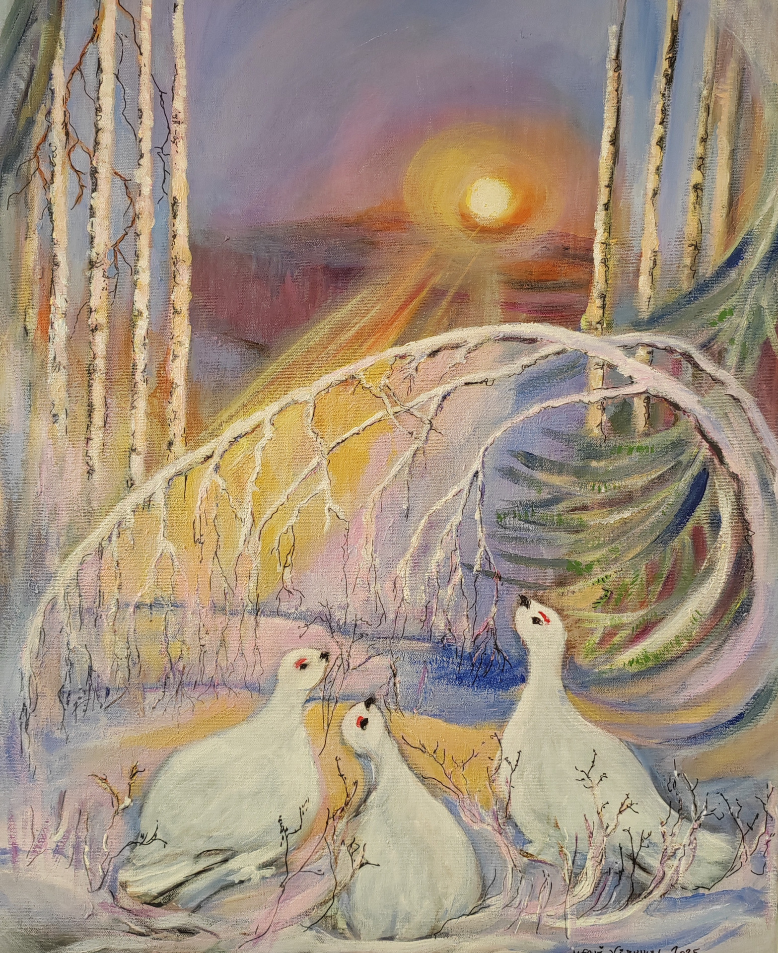 Lainaan Kari Korpelan kommenttia Heimon töistä: Heimon taide on kertovaa, puhuttelevaa!- Useiden taiteessa näkyy elinaikainen harrastus.Heimon sivellin on jättänyt näkyvän, tarinoita kertovan, huomiseen johtavan jäljen!