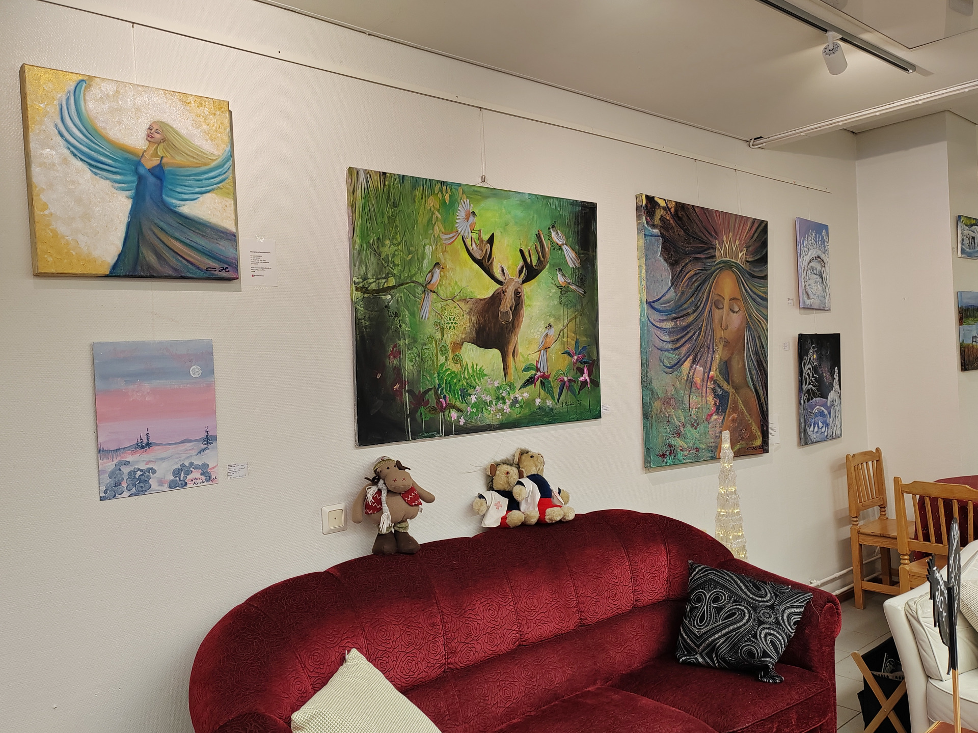 Taideseuran jäsenten näyttely "Juhlamielellä" jatkuu maaliskuun 25. päivään saakka. Näyttelyn yhteydessä voi osallistua taudearjaisiin, jossa palkintona on Eerika Haatelan näyttävä triptyykki.